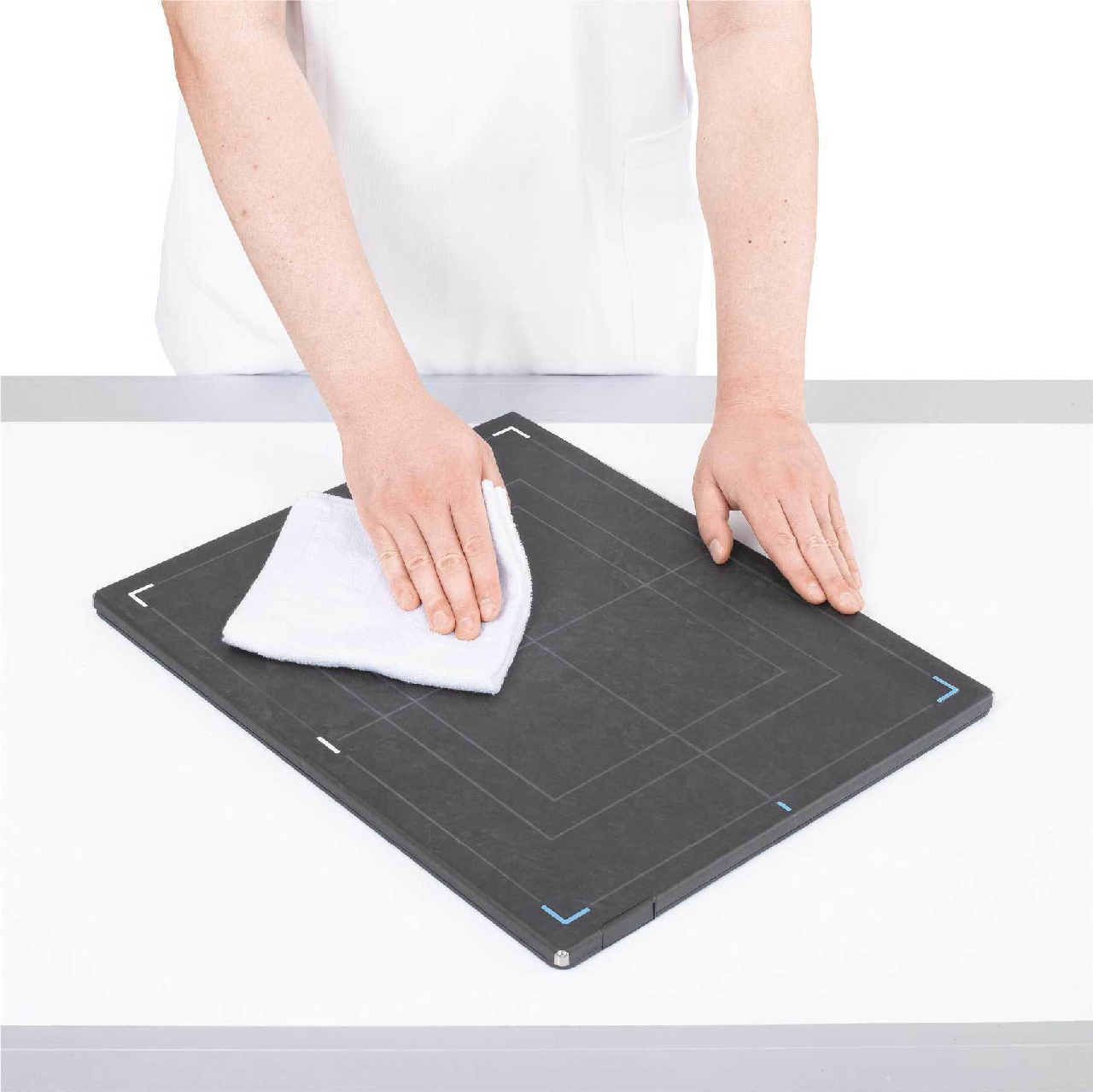 In das robuste Carbongehäuse des AeroDR 3 SL und HL Detektors ist ein antibakterielles Material fest und gleichmäßig über die gesamte Oberfläche eingearbeitet. Diese antibakterielle Oberfläche ist sehr beständig und unterliegt im täglichen Gebrauch keiner Abnutzung – auch nicht durch Kratzer.