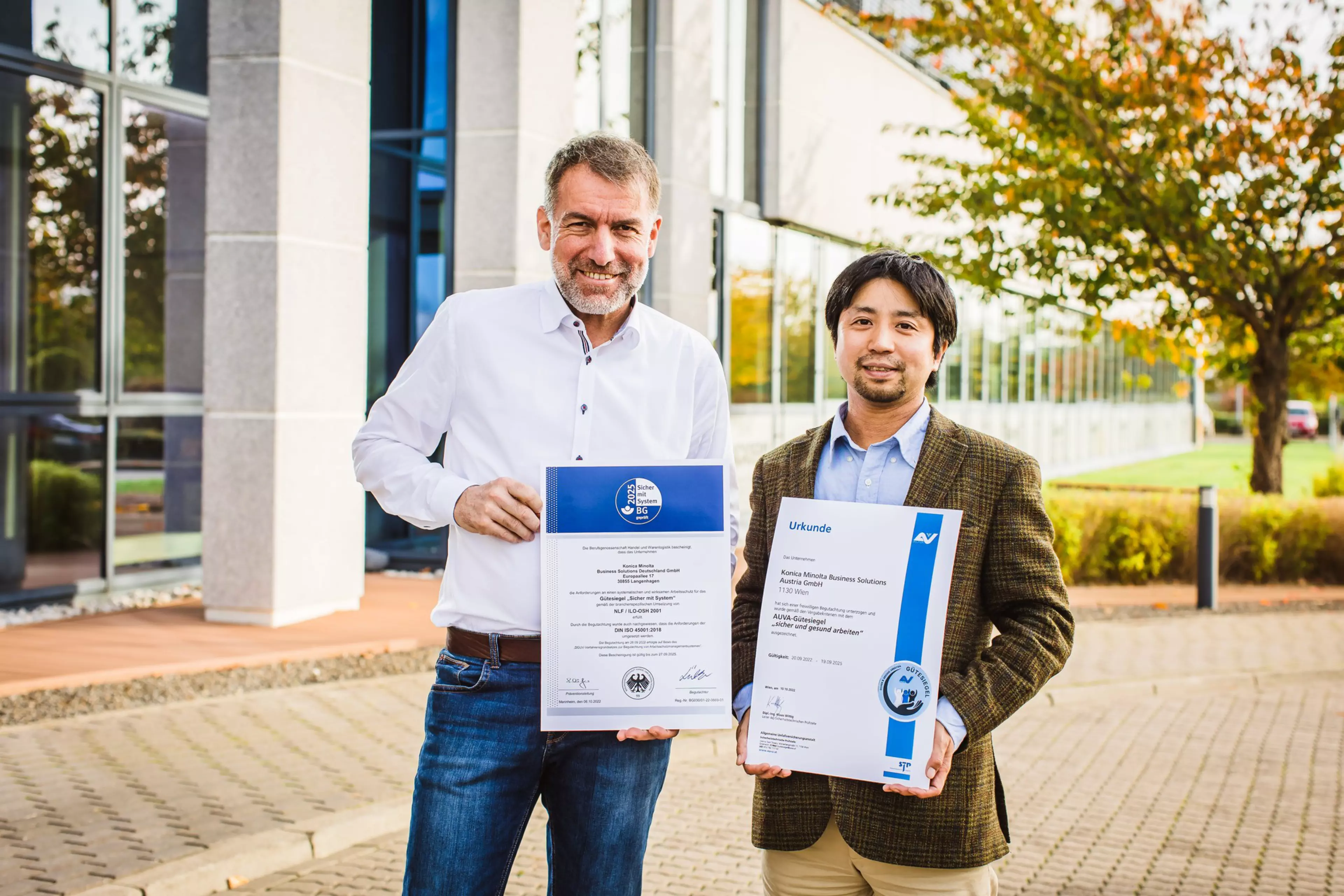 Konica Minolta hat die beiden Gütesiegel „Sicher mit System“ und „Sicher und gesund arbeiten“ erhalten. Damit stellt das Unternehmen erneut unter Beweis, dass wirksamer Arbeitsschutz einen wichtigen Pfeiler in der Fürsorge des Unternehmens für seine Mitarbeitenden darstellt.
